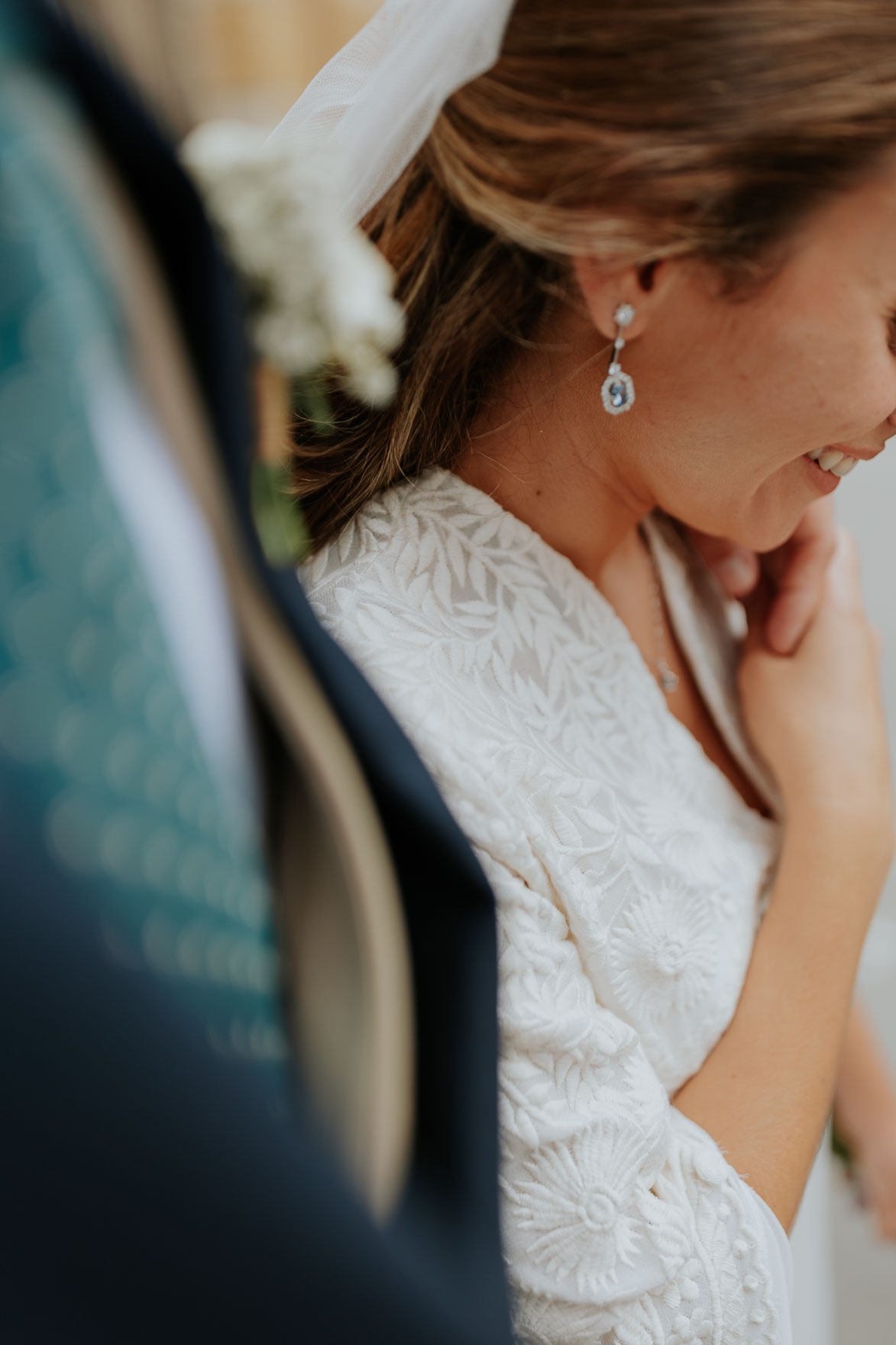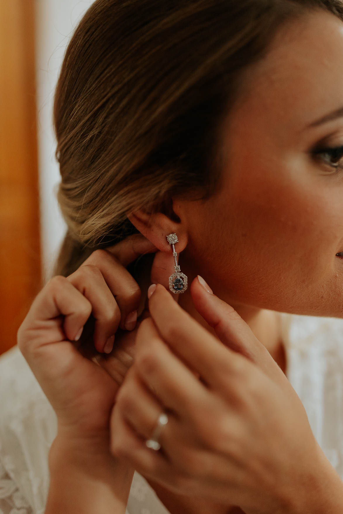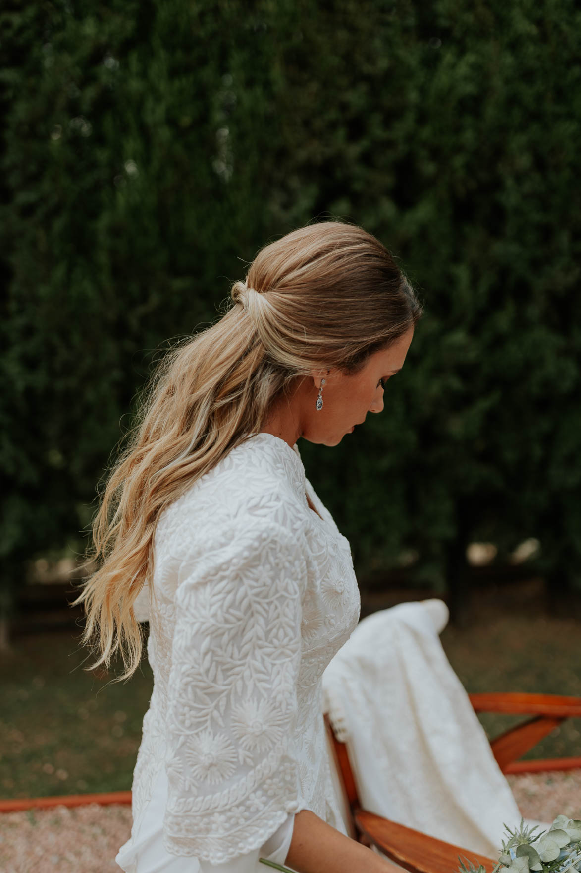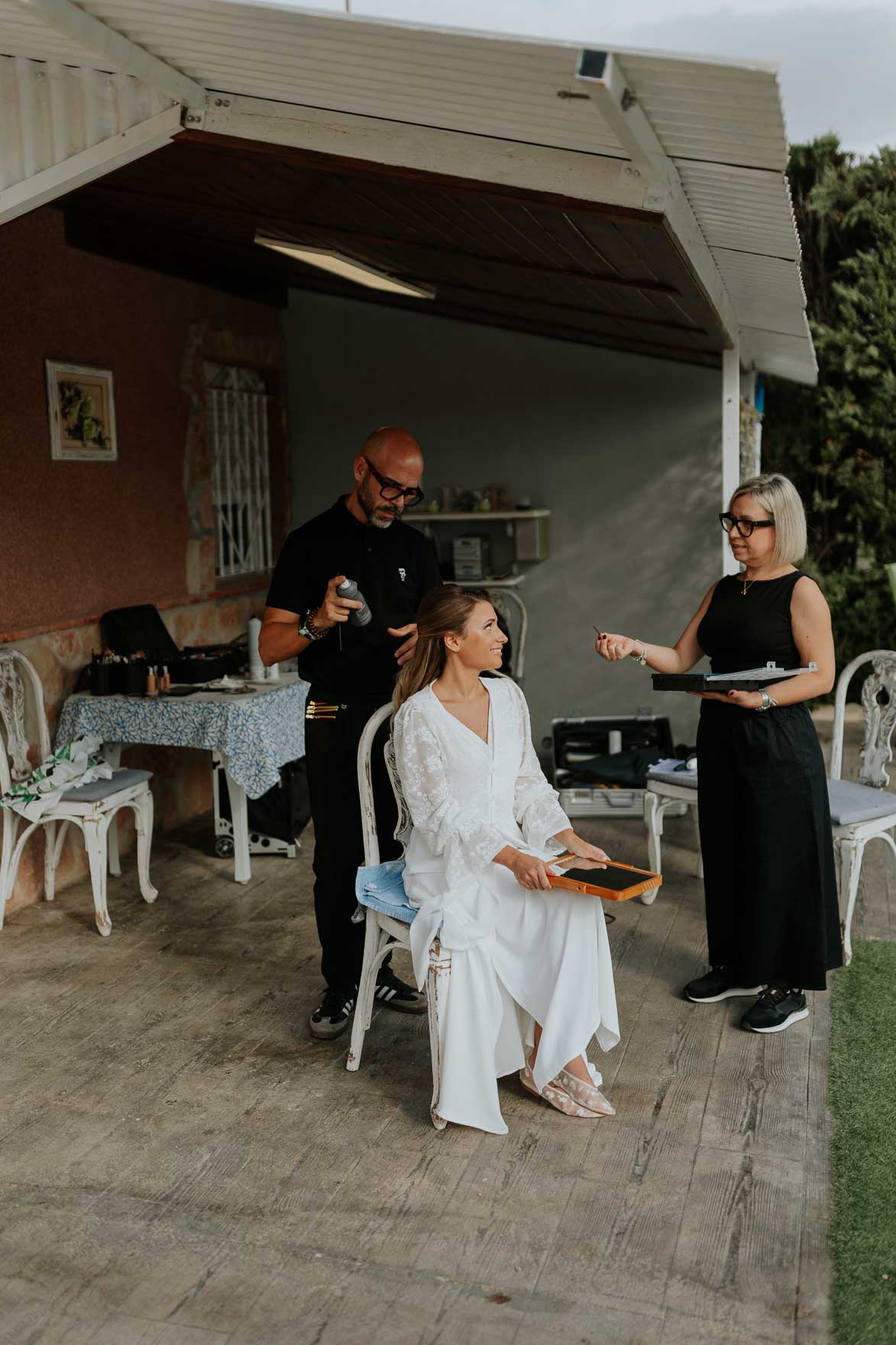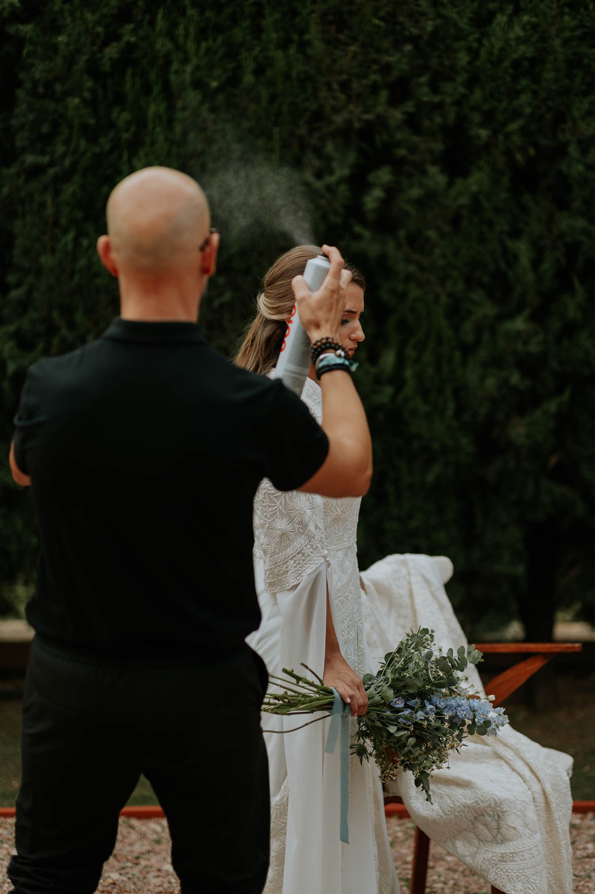 El día de la boda de Celia y Borja comenzó con la calma y la ilusión de los preparativos. La novia apostó por un maquillaje luminoso y un peinado natural que realzaban su elegancia sin perder frescura, por Javier Más Peluqueros y Fanny Makeup.