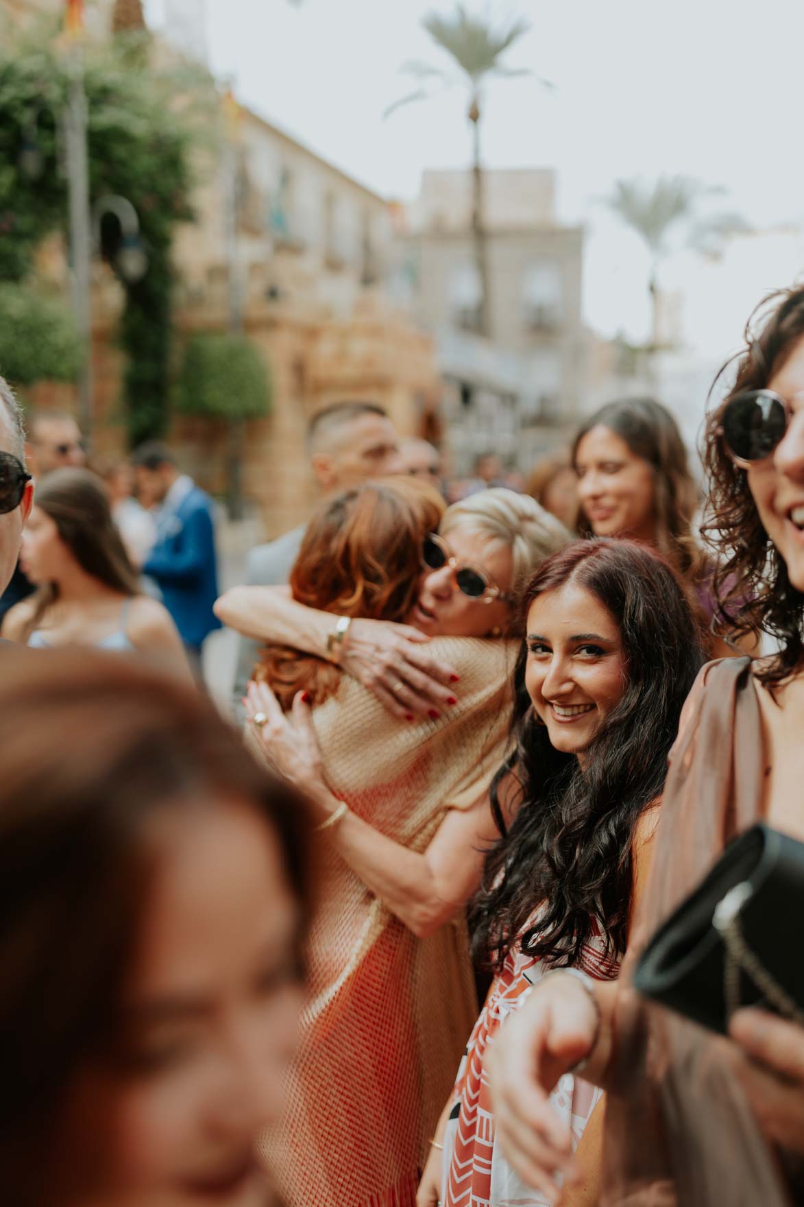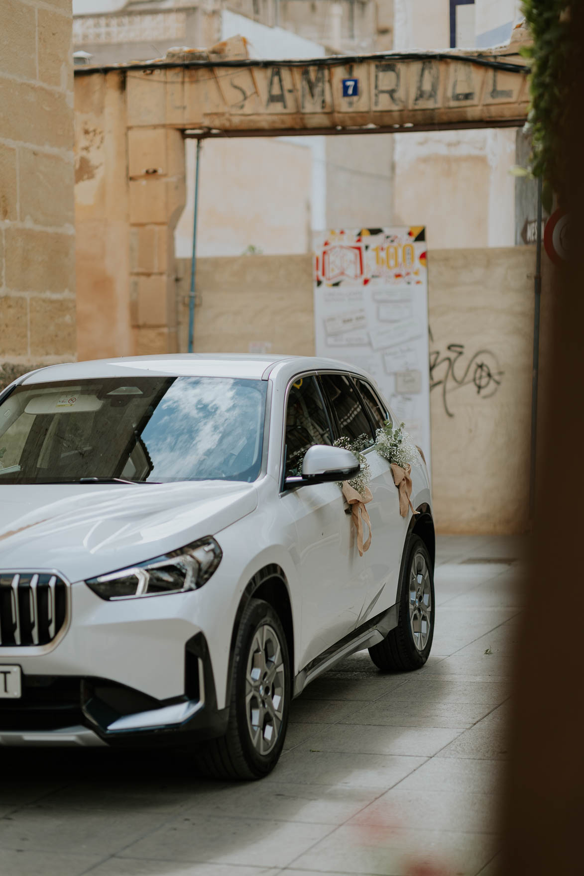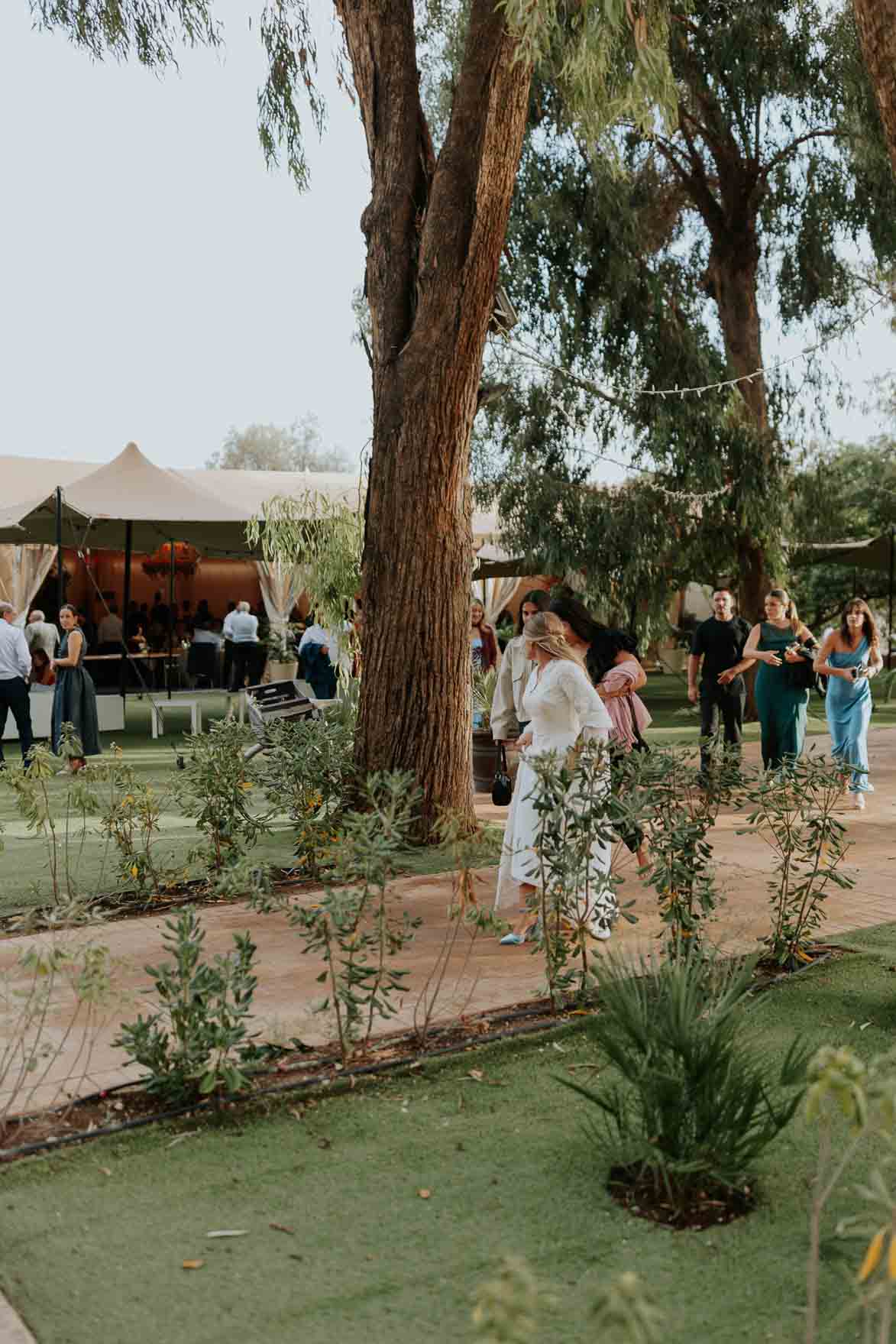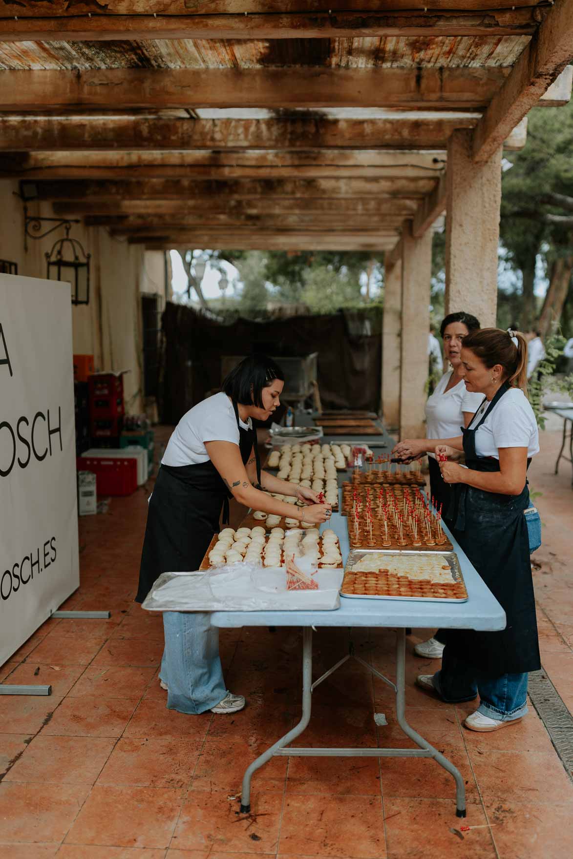 La decoración de la iglesia se basó en una mezcla de hojas de olivo, eucalipto y flores campestres, creando un ambiente natural y armónico. En Finca Torre Bosch, la carpa beduina se vistió con servilletas vichy negras, limones y flores, siguiendo la misma línea, por Las Flores de Aurora.