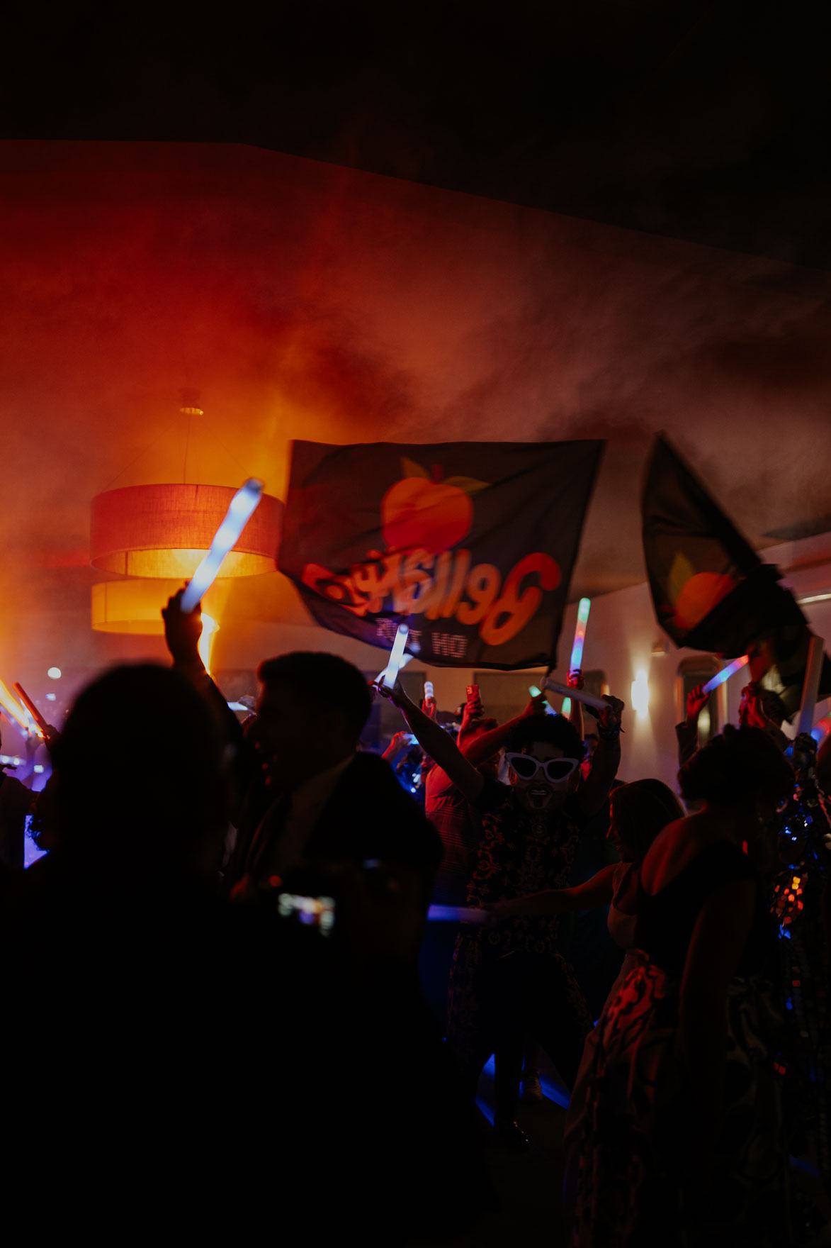 Después de la comida, el tardeo frente a la torre dio paso a una fiesta épica con una Hora Loca temática de Bad Bunny: cabezones, banderas y luces por todas partes, por EventsMS. Una jornada que combinó emoción, risas y un ambiente único en Finca Torre Bosch, donde cada rincón se convirtió en escenario de recuerdos inolvidables.