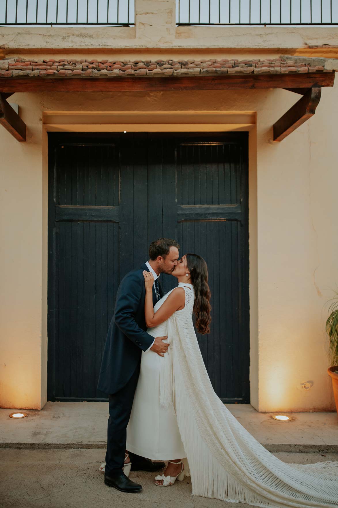 Sandra iba con un vestido imponente y una capa de flecos espectacular creada por Aleste Atelier.