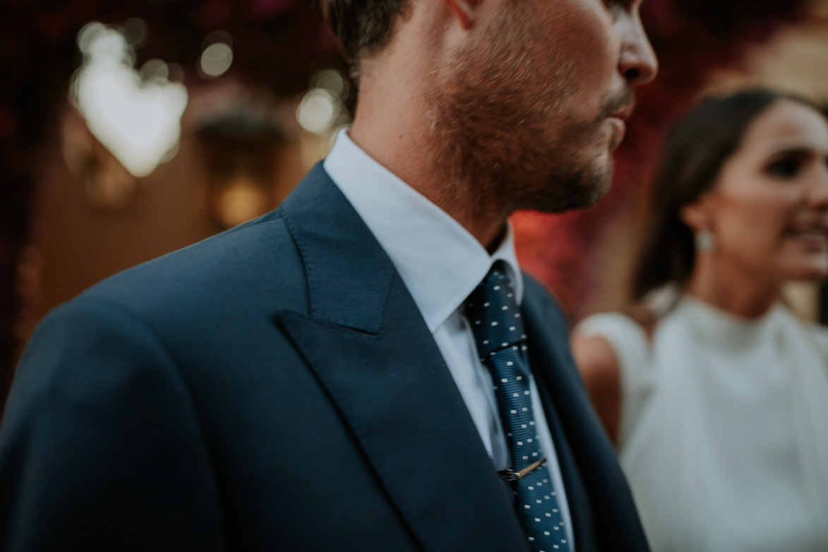 El novio, Michael, parecía un actor de cine inglés, para esa ocasión opto por un chaqué en tono azul marino confeccionado por BlackCape.