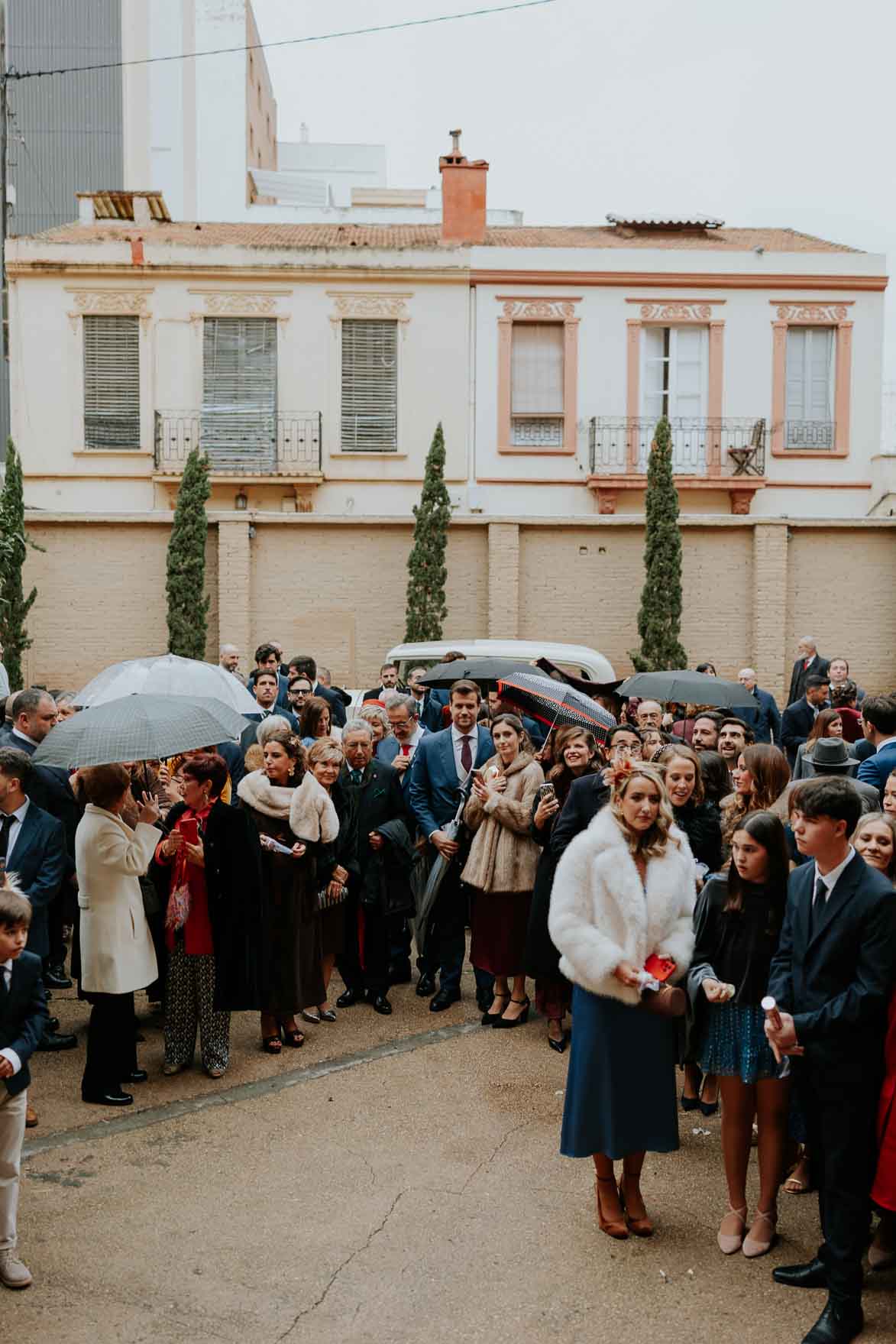 los invitados cerraron los paraguas para que ella no sintiera la lluvia como una molestia, sino como parte del momento.