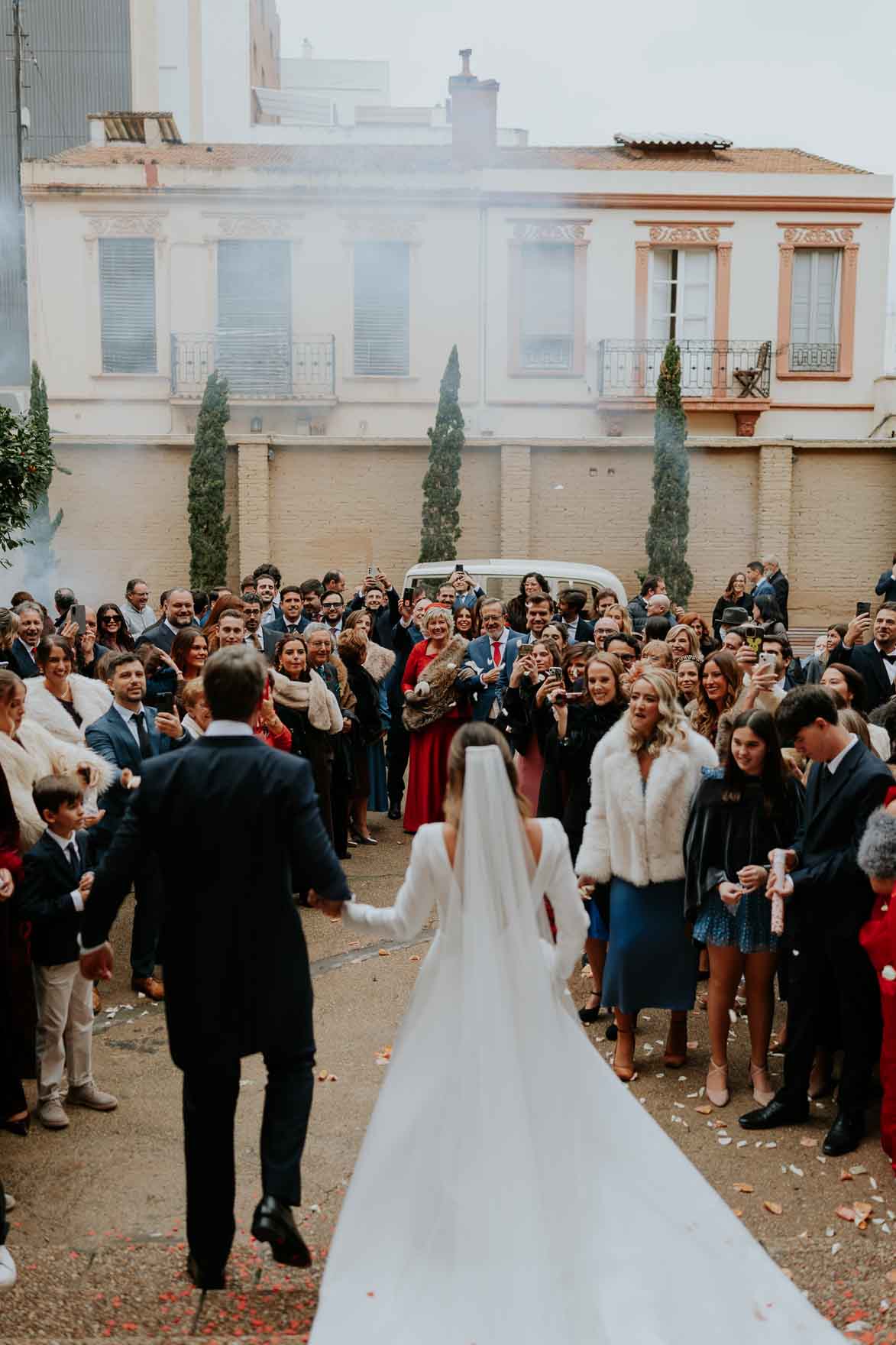 Marta y Tomás hicieron su entrada con humo y los colores de la señera, un guiño muy especial a Valencia que levantó a todos los invitados.
