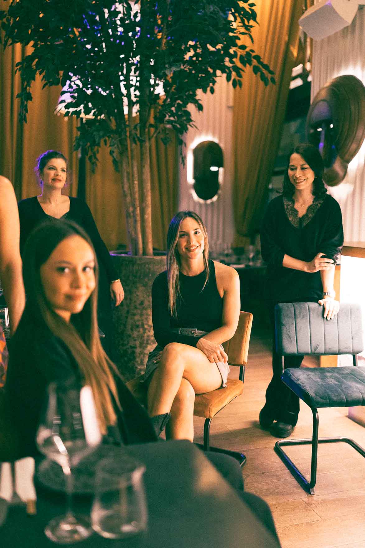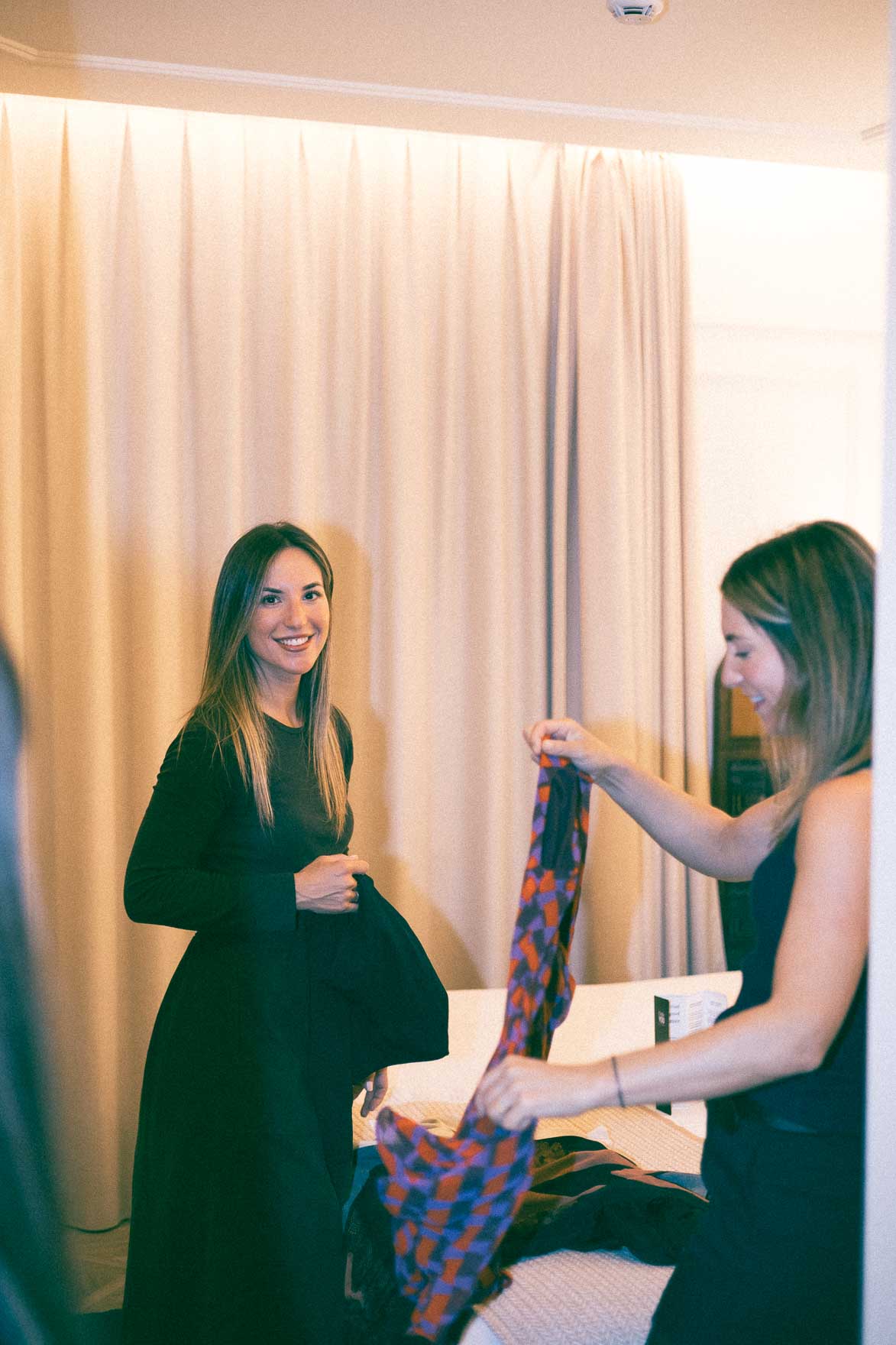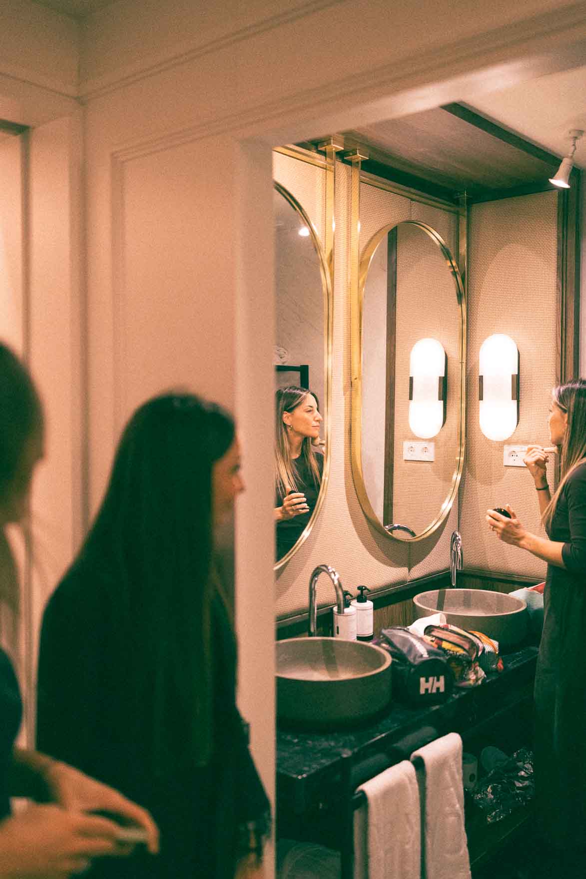 Usamos distintas zonas del hotel: la habitación, la recepción y el restaurante Salvaje. Risas, complicidad y una energía brutal que marcó el tono de todo el fin de semana. No era una preboda al uso, era un recuerdo real con sus amigas, sin poses forzadas.
