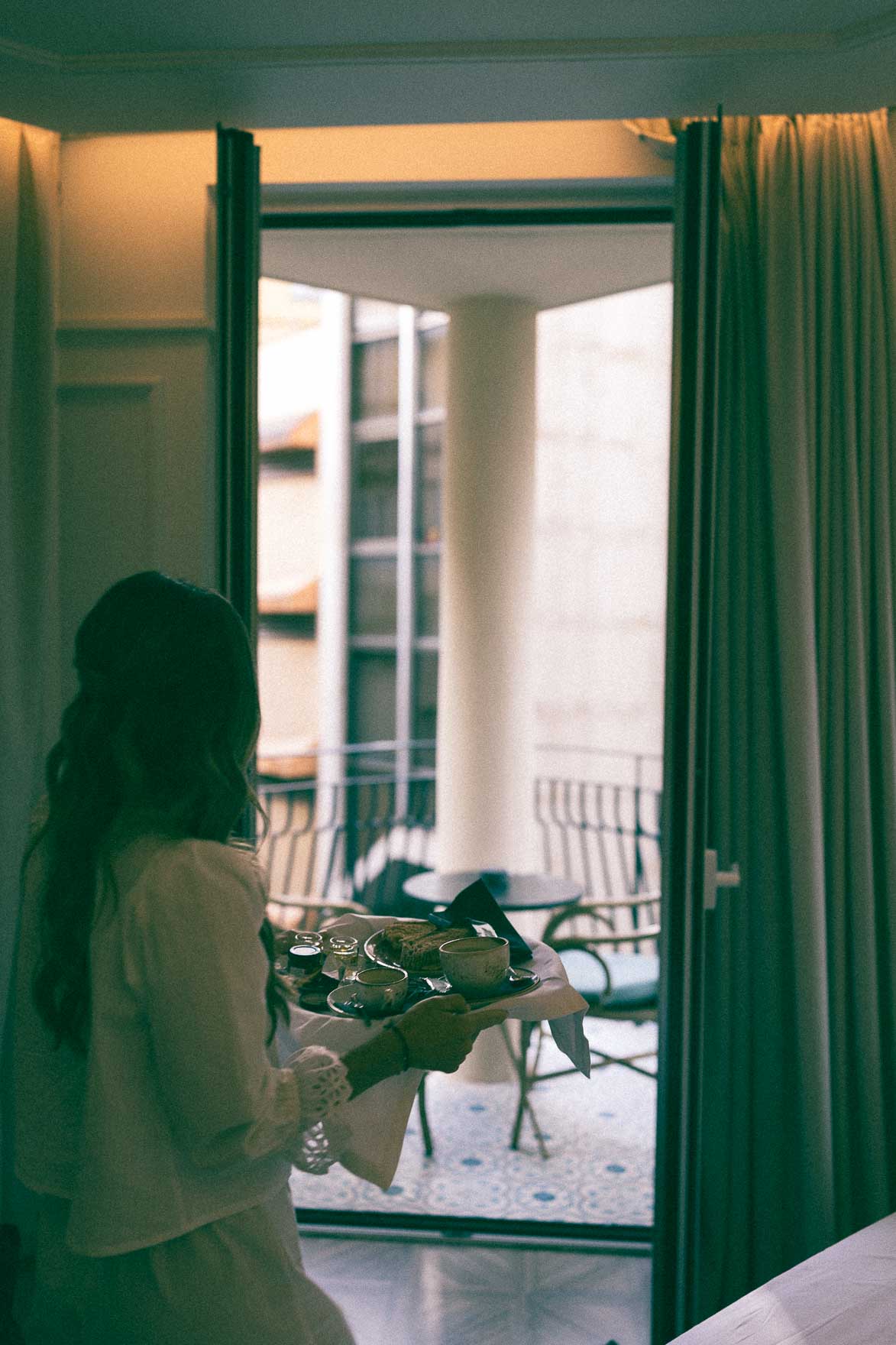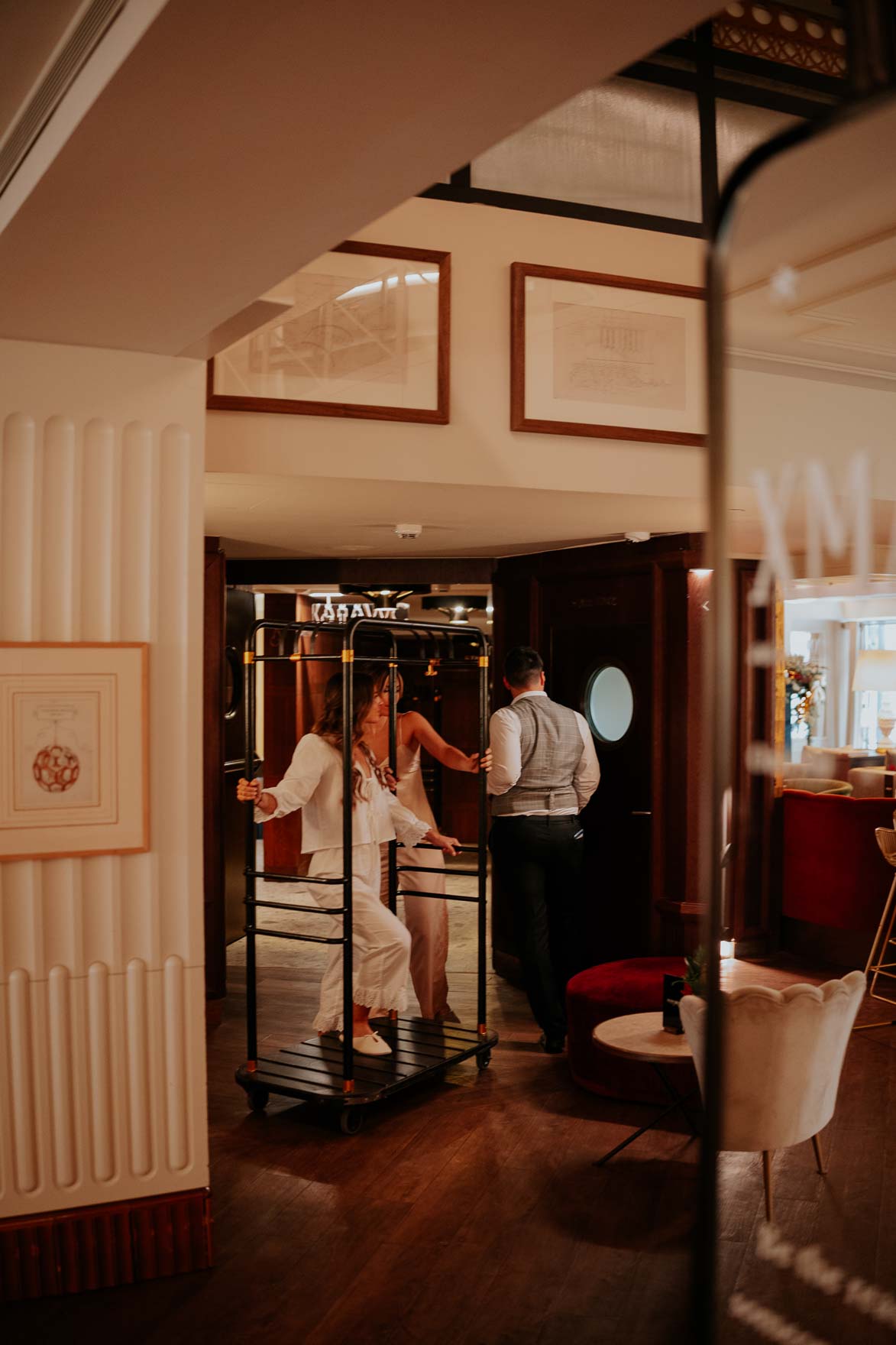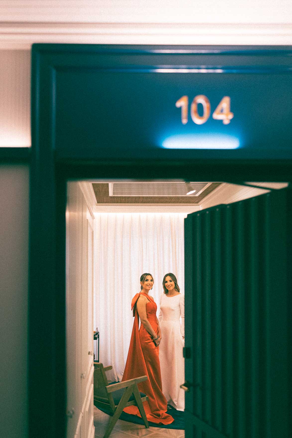 Después volvimos al Only YOU para los preparativos de Marta. Junto a su hermana, transformamos la recepción y los espacios del hotel en un escenario perfecto para una sesión muy libre, jugando con el mobiliario y buscando un estilo más moda, sin perder naturalidad.