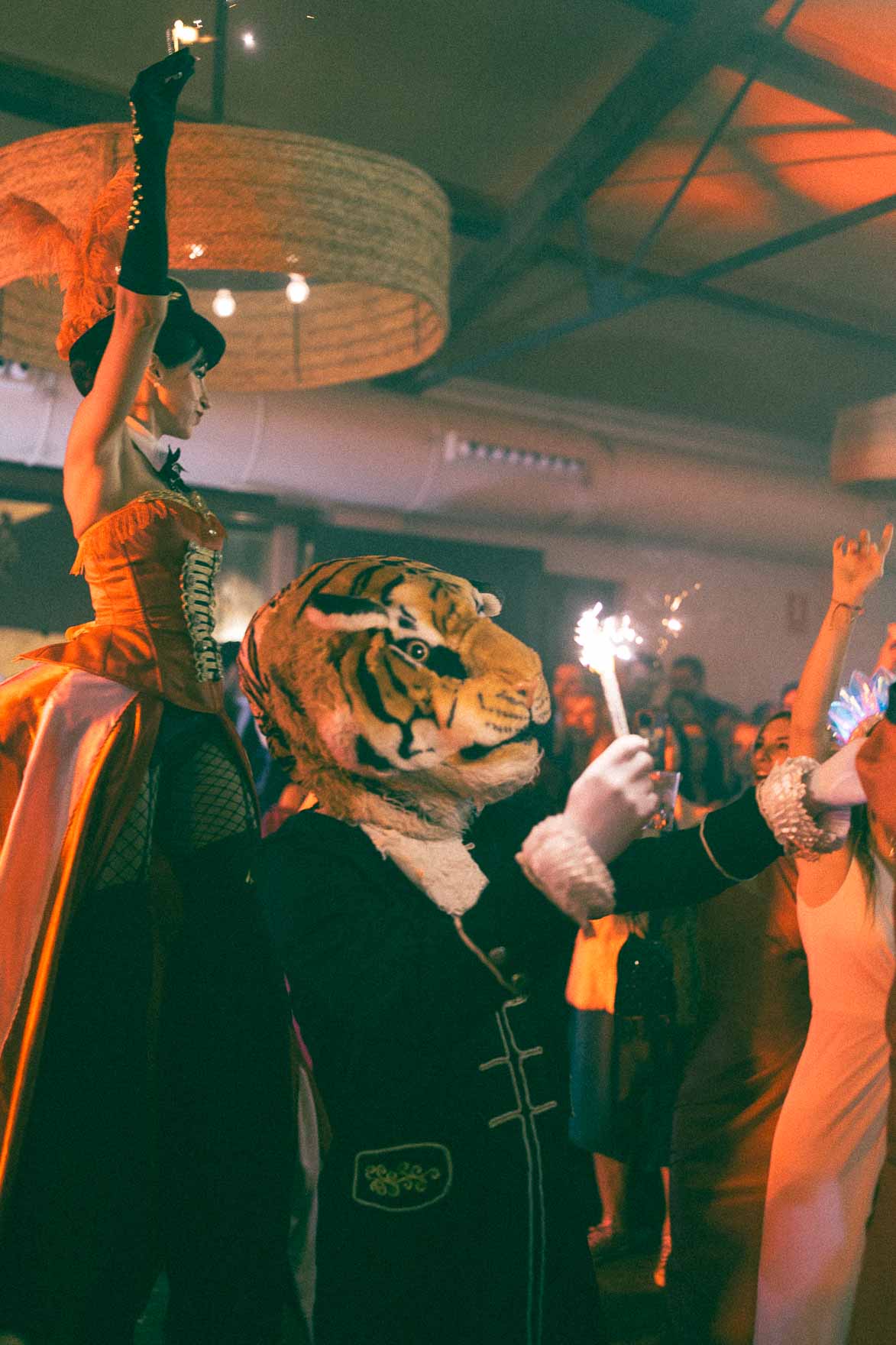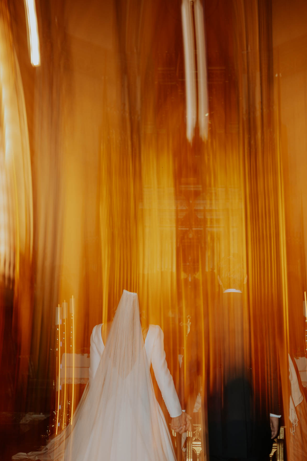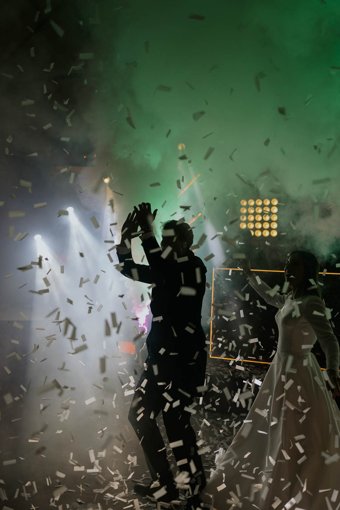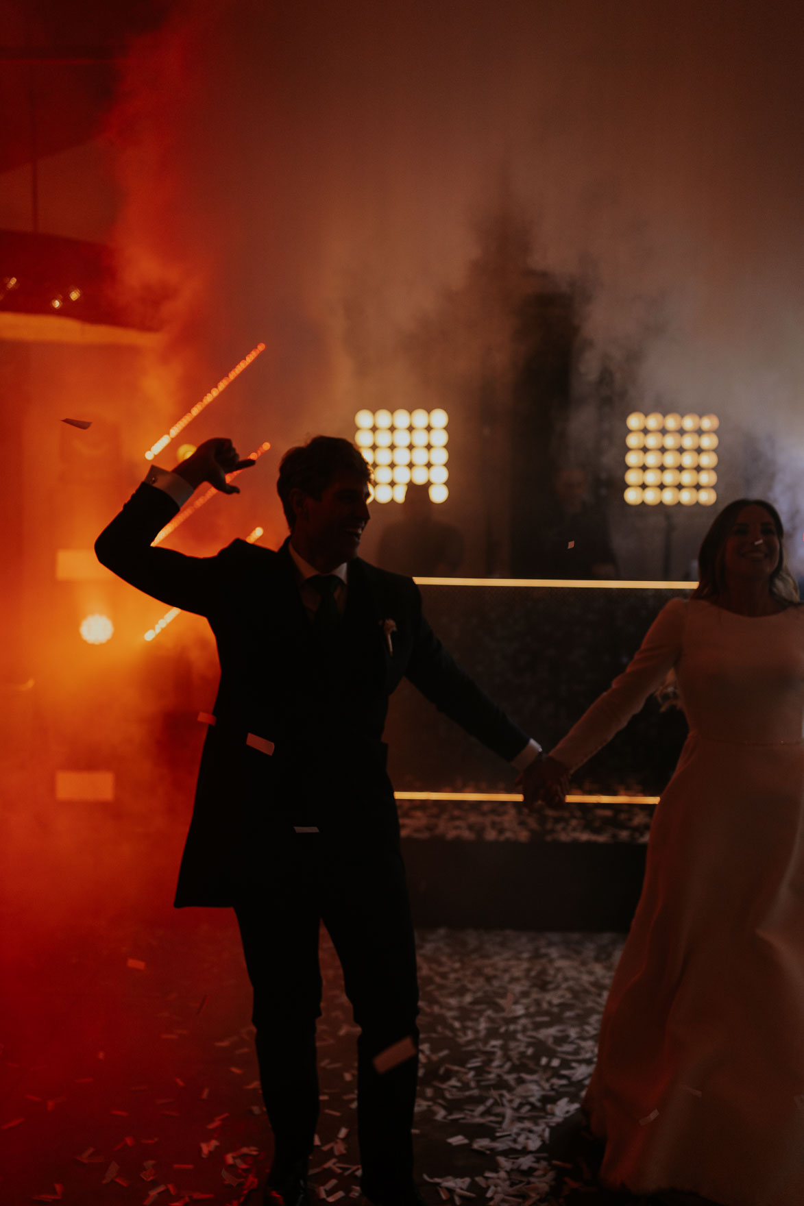 Marta y Tomás hicieron su entrada con humo y los colores de la señera, un guiño muy especial a Valencia que levantó a todos los invitados.