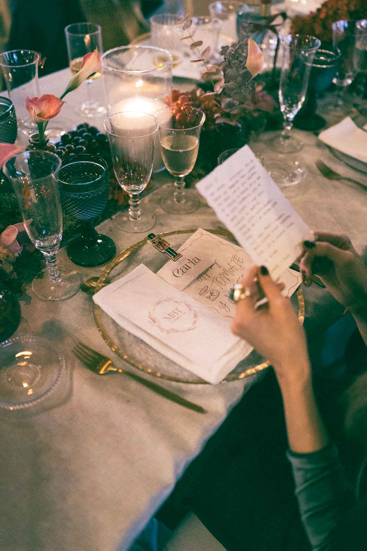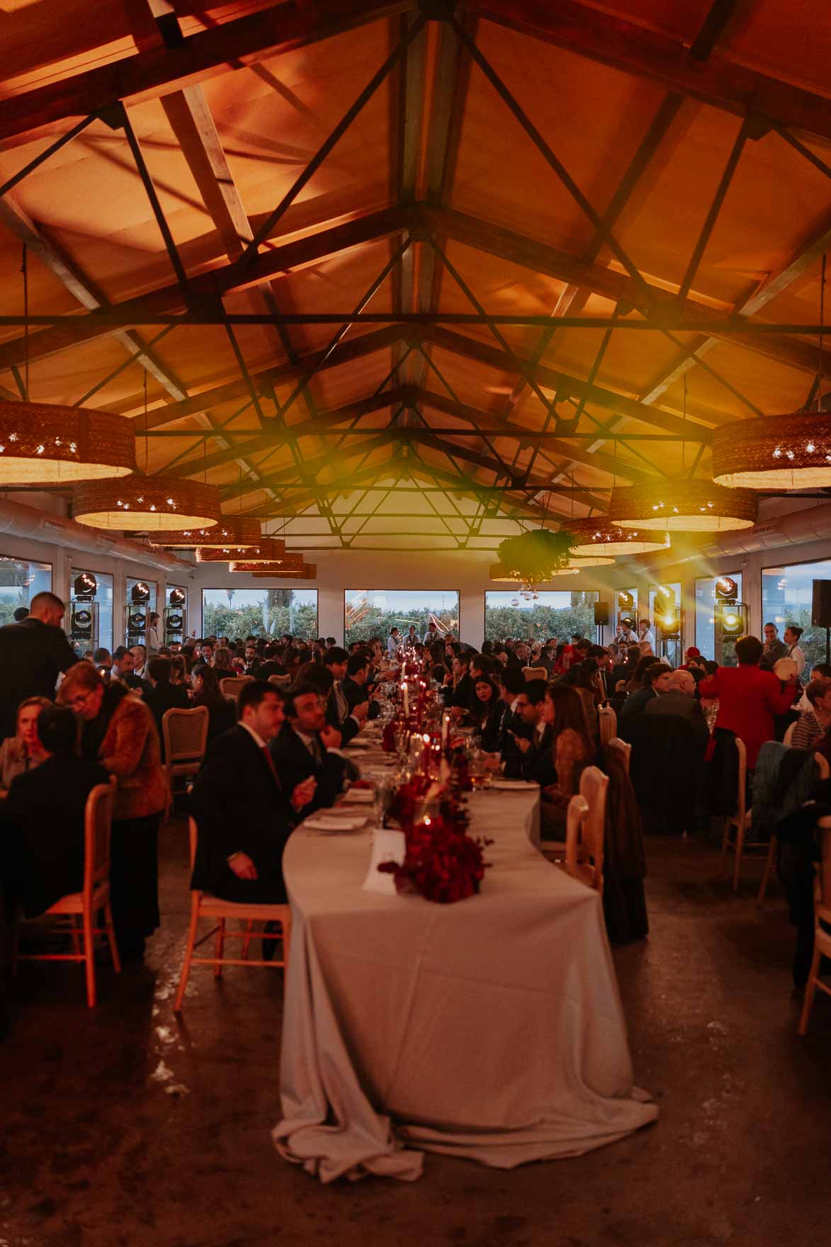 Al llegar a la finca nos encontramos con una decoración espectacular, de inspiración navideña, con rojos, tonos cálidos y una atmósfera muy acogedora.