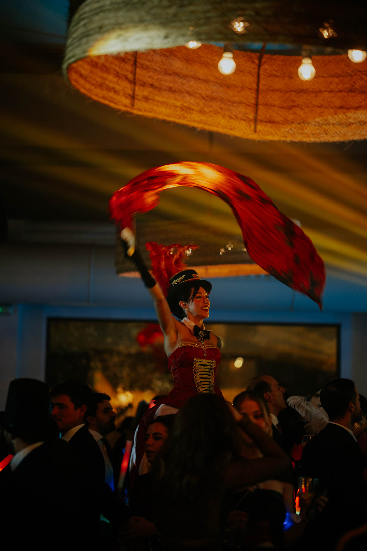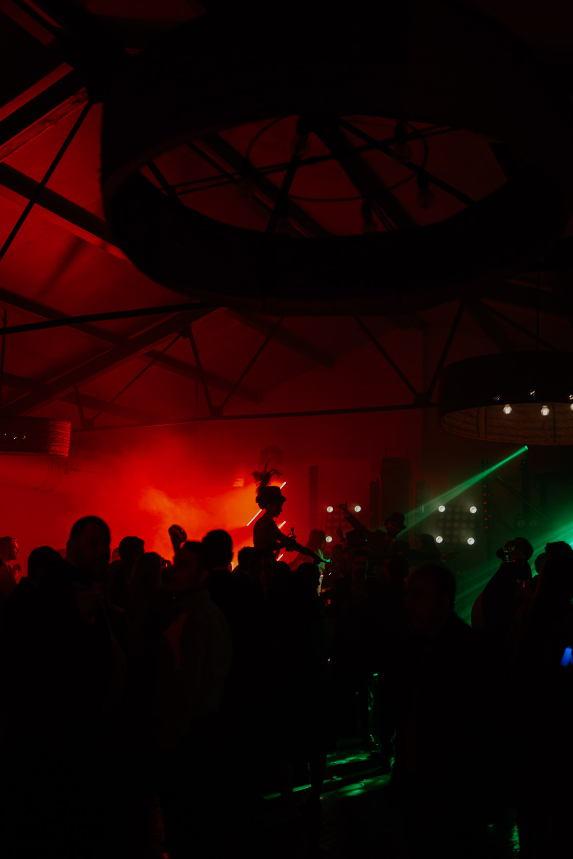La noche terminó con un montaje impresionante de Audioprobe, performance y zancudos de Evenland, y una pista llena hasta las doce y media de la noche. Energía, baile y muchas ganas de celebrar.