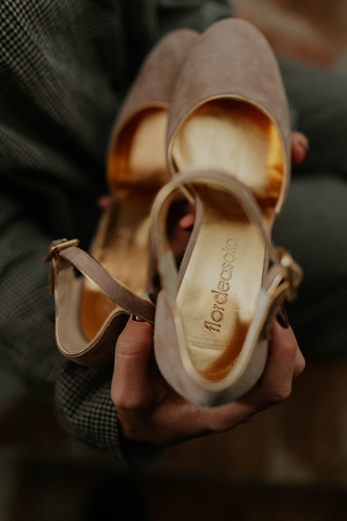 Los zapatos eran de Flor de Asoca, delicados y con mucha personalidad.