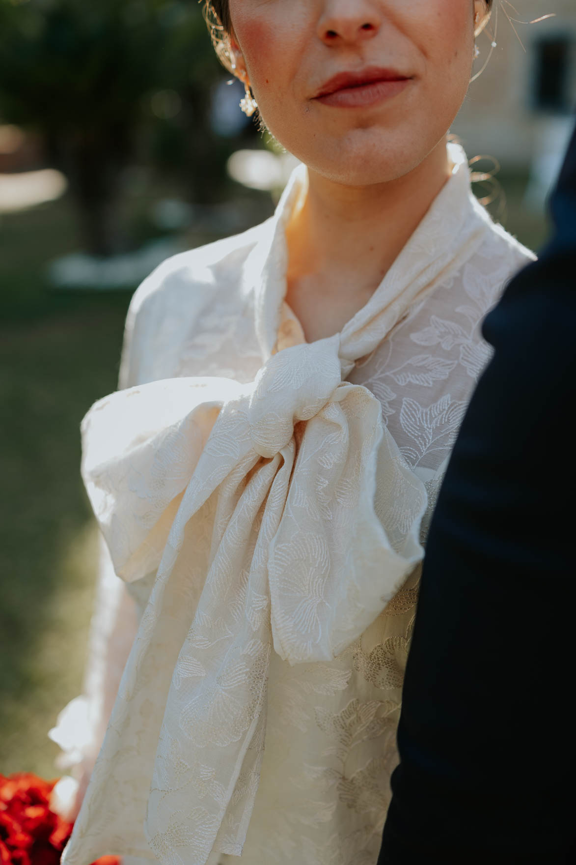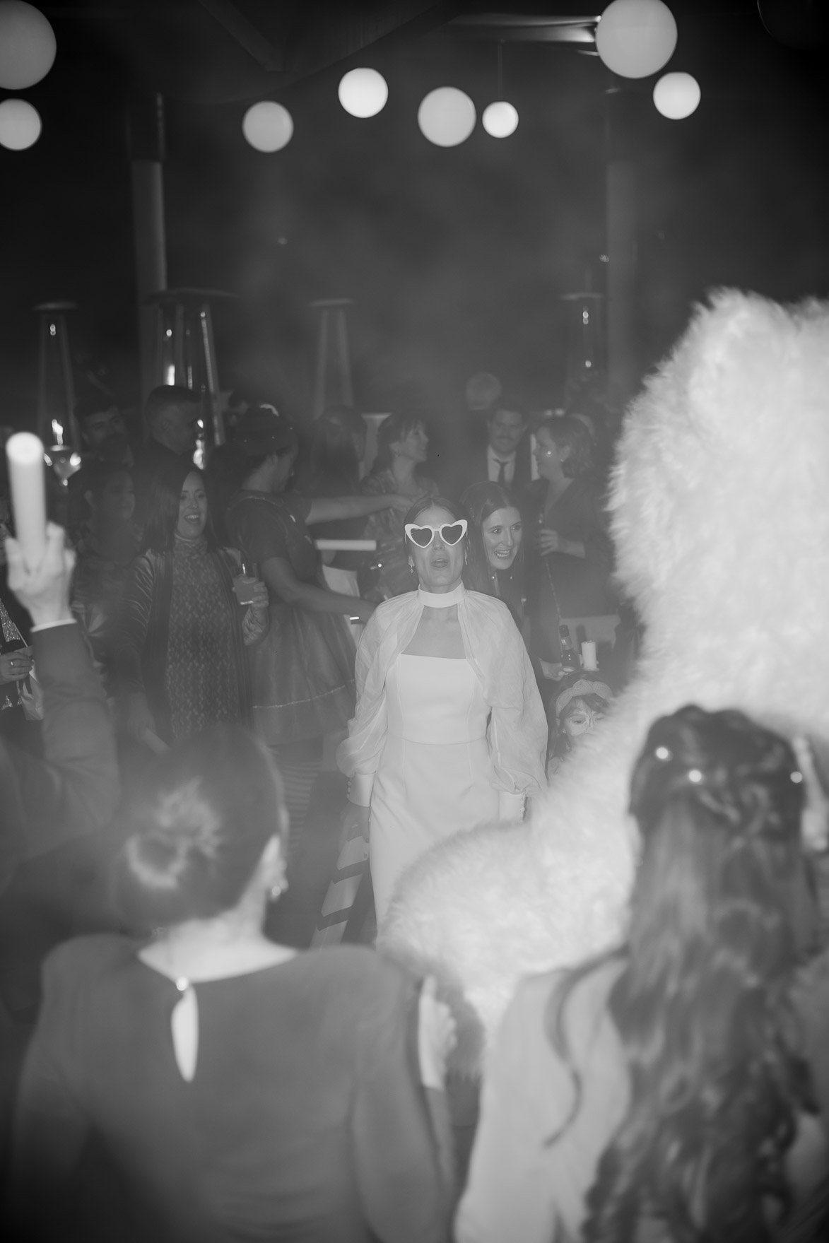 Para la fiesta, Laia se quitó la capa exterior y se quedó con el look más ligero, con mangas abullonadas que aportaban un toque moderno y súper fotogénico., perfecto para bailar sin parar.