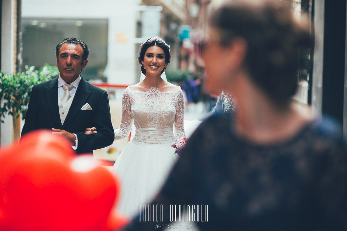 Cuando llegamos Eduardo Lopez estaba dejando preciosa a la novia y Pedro Alegría terminando de peinar a la novia y dejarla perfecta con una preciosa tiara de flores en tonos blancos y dorados, era una tiara muy bonita, la novia la llevo con un precioso recogido y lo terminó de complementar con su vestido con un cuerpo de encaje con media manga ideal de Hannibal Laguna, uno de los complementos que la novia fue a EE.UU a comprase fueron los zapatos que llevaba de la firma Badgley Mischka, es una marca que le gustaba mucho y en España no esta. Cogió su colorido y dulce ramo y nos pusimos de camino los fotógrafos de Murcia a ver como la pareja unía sus vidas en la Catedral de San Nicolás de Murcia.