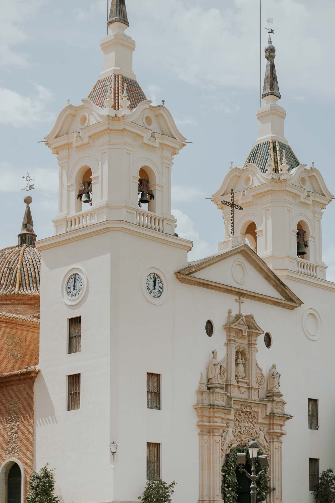 En la parte exterior dispone de una fachada central de Toribio Martínez de la Vega, con torres laterales.