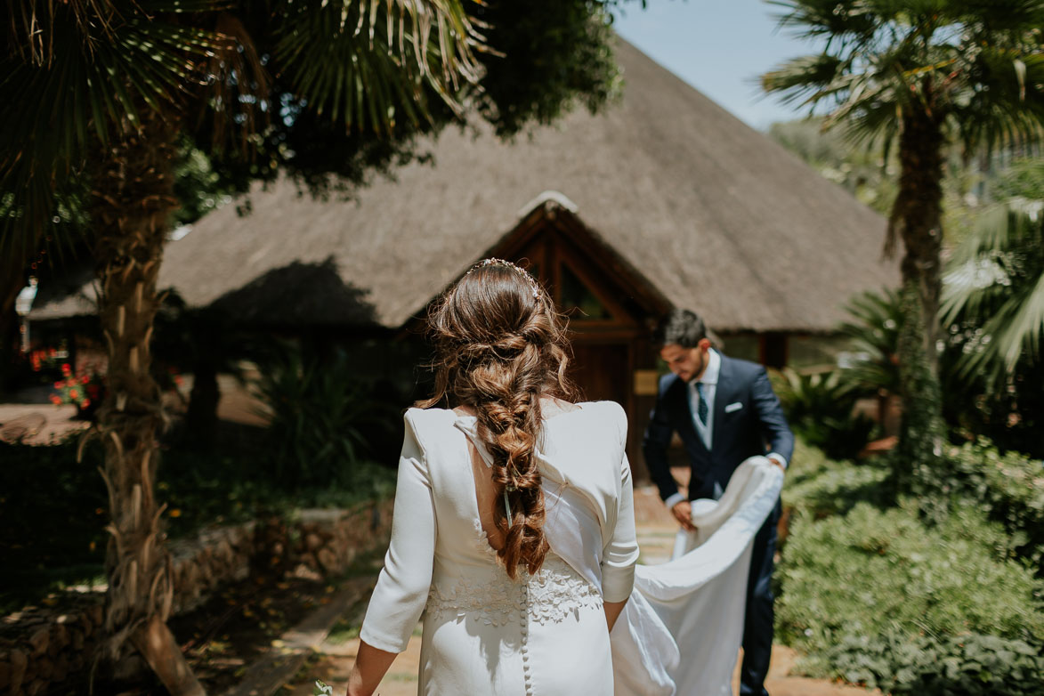 El vestido de la novia fue diseñado por Rubén Hernández, con un diseño en crepé y una capa bordada a mano con motivos florales, todo un acierto.
