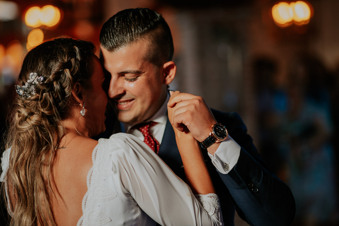 Las lámparas de techo, forjadas a mano en un prestigioso taller sevillano, están adornadas con bombillas de filamento que contribuyen a crear un ambiente aún más cálido y acogedor.