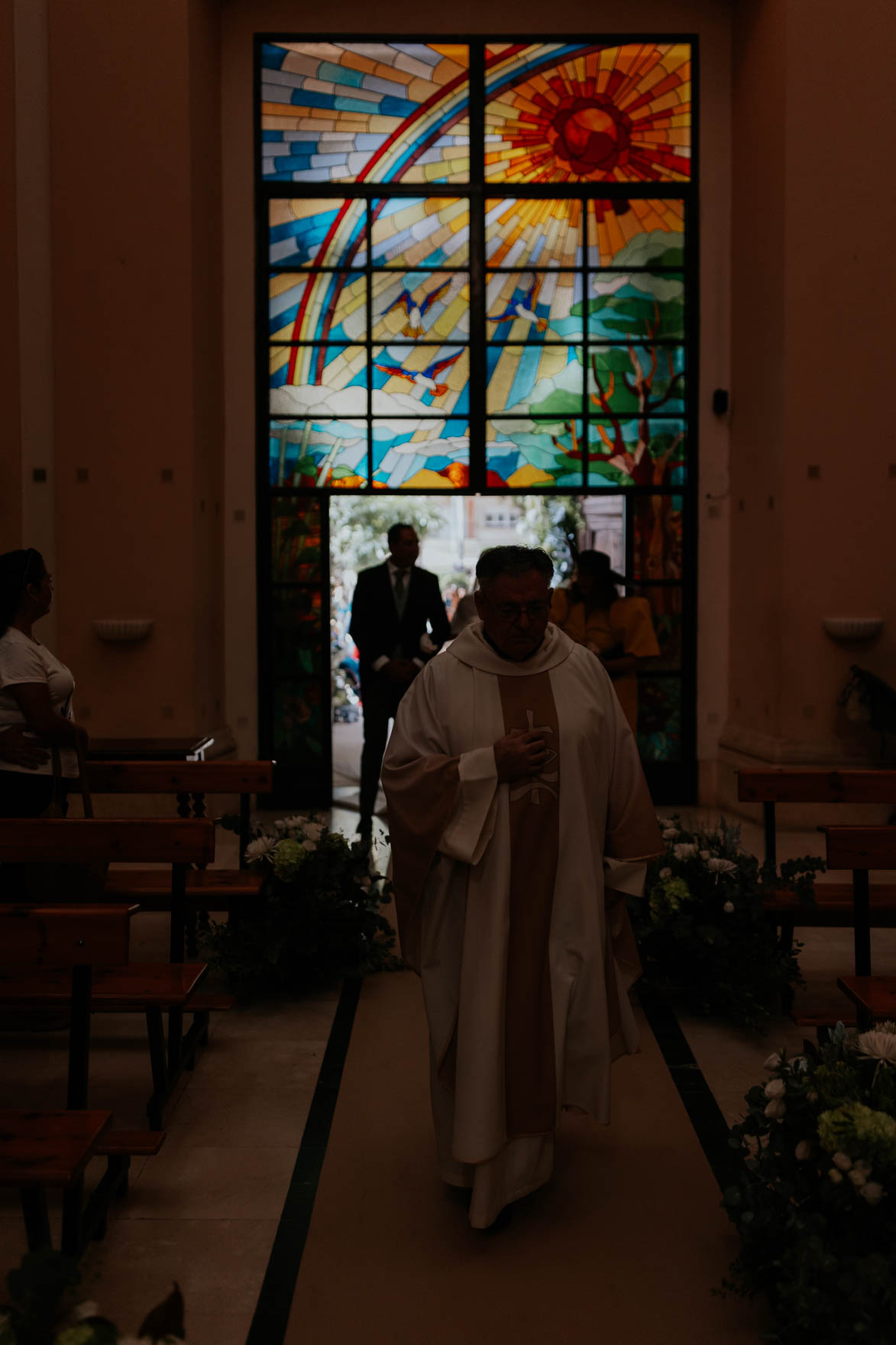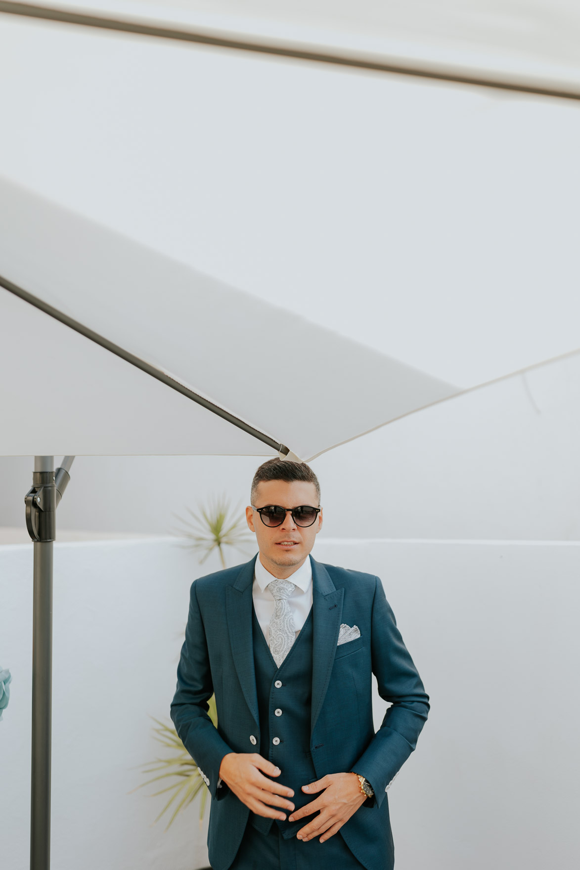 Ana y Antonio celebraron su boda en el corazón de Águilas, en la encantadora iglesia situada en la plaza central de la ciudad. La mañana empezó de manera relajada y divertida: Antonio se preparó en casa junto a sus amigos, en un ambiente fresco y desenfadado, mientras que Ana estuvo con sus amigas, en su hogar, con un estilo moderno y muy cuidado.