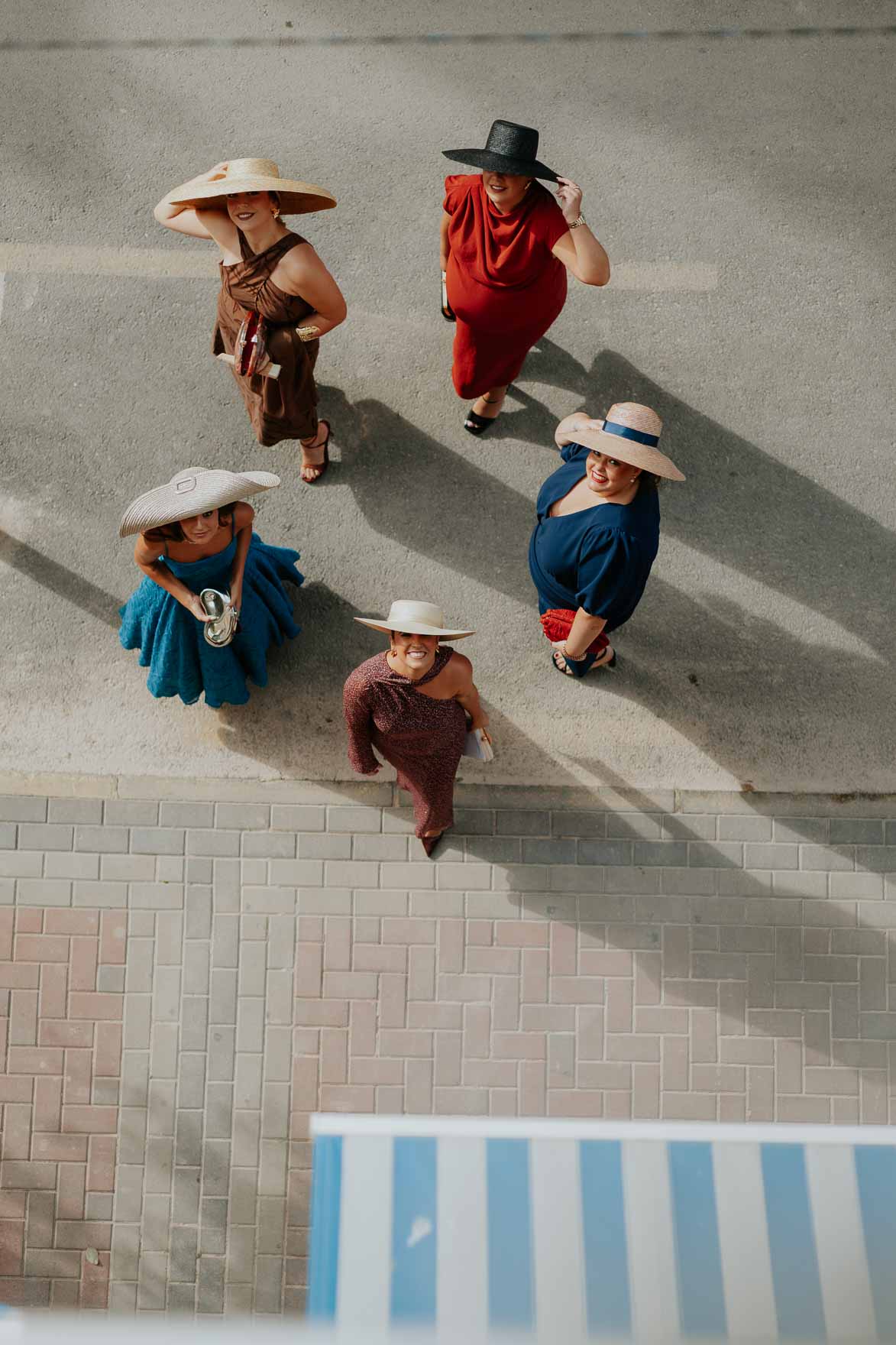 Lo más especial de esta boda, además de la alegría de los novios, fue el estilo de Ana y sus amigas con pamelas, un detalle que marcó la diferencia y aportó un toque de elegancia y personalidad único.