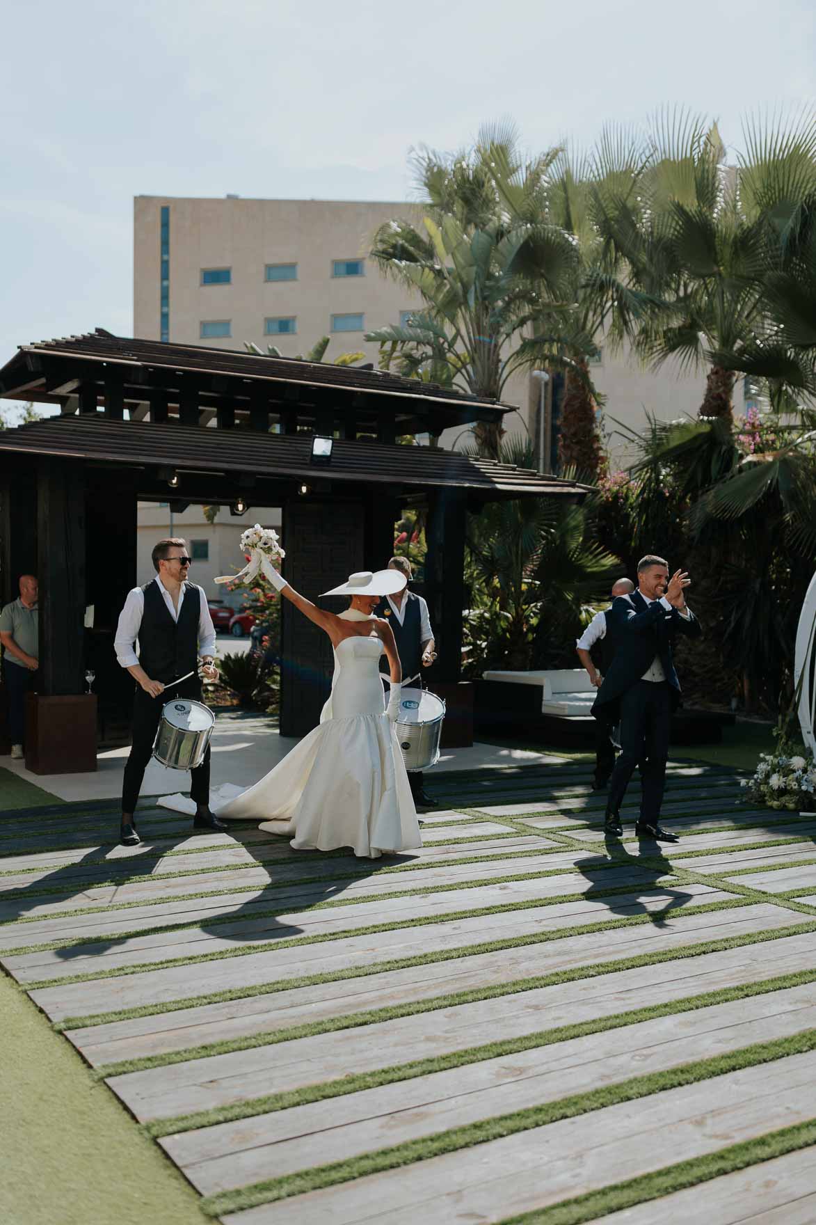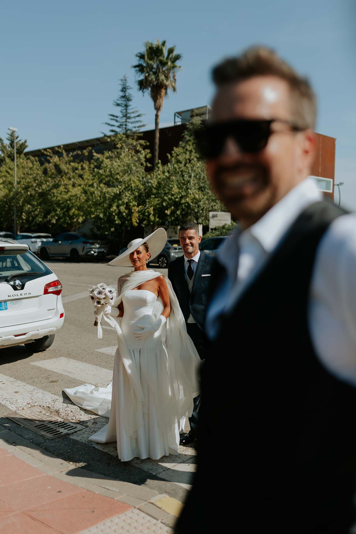 Si buscas inspiración para incorporar una pamela en tu boda, este ejemplo demuestra cómo un accesorio puede ser el protagonista de tu look, manteniendo elegancia y personalidad.