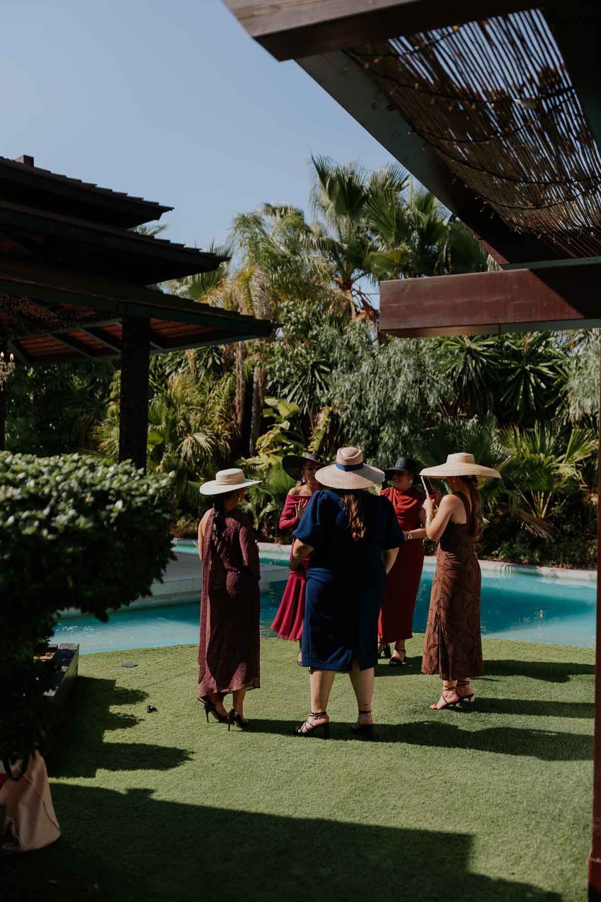 Lo más especial fue que las amigas de la novia también apostaron por pamelas, creando un conjunto elegante y coordinado.