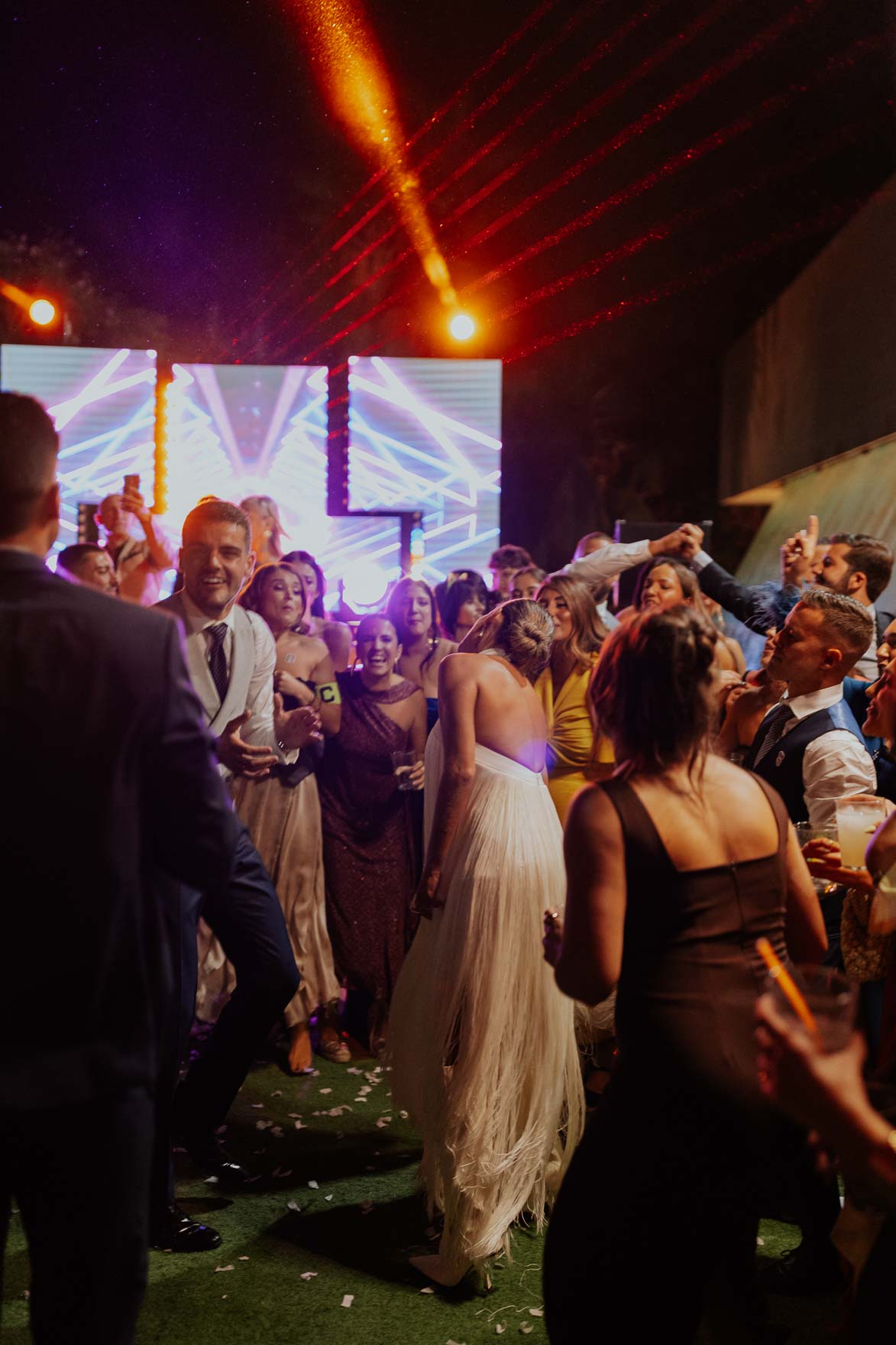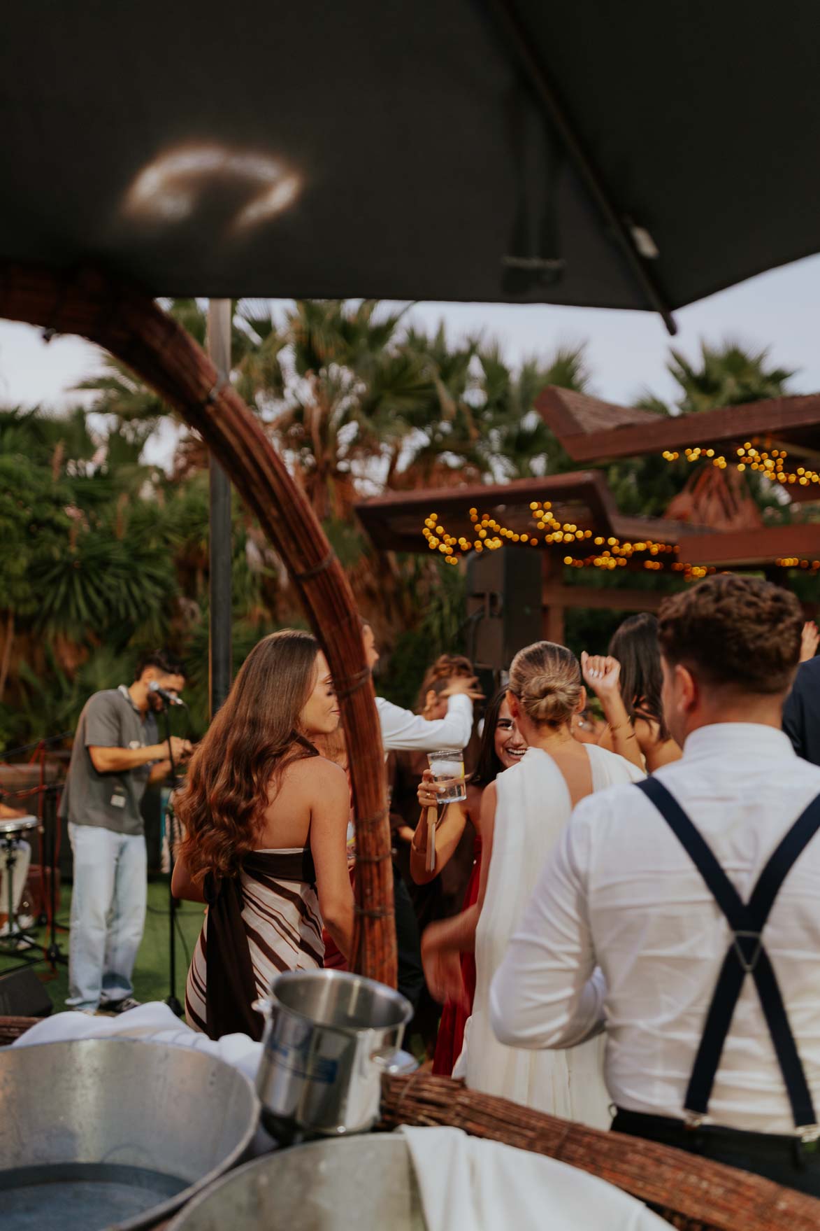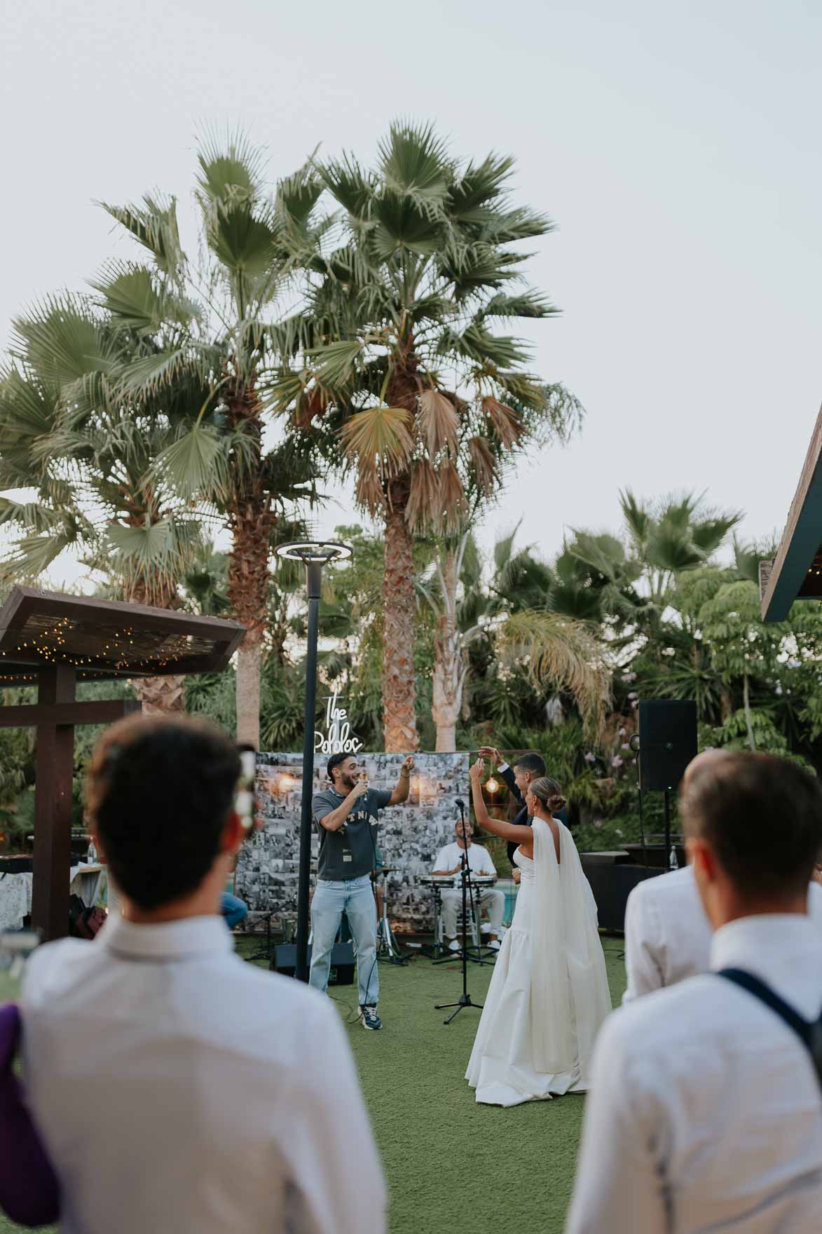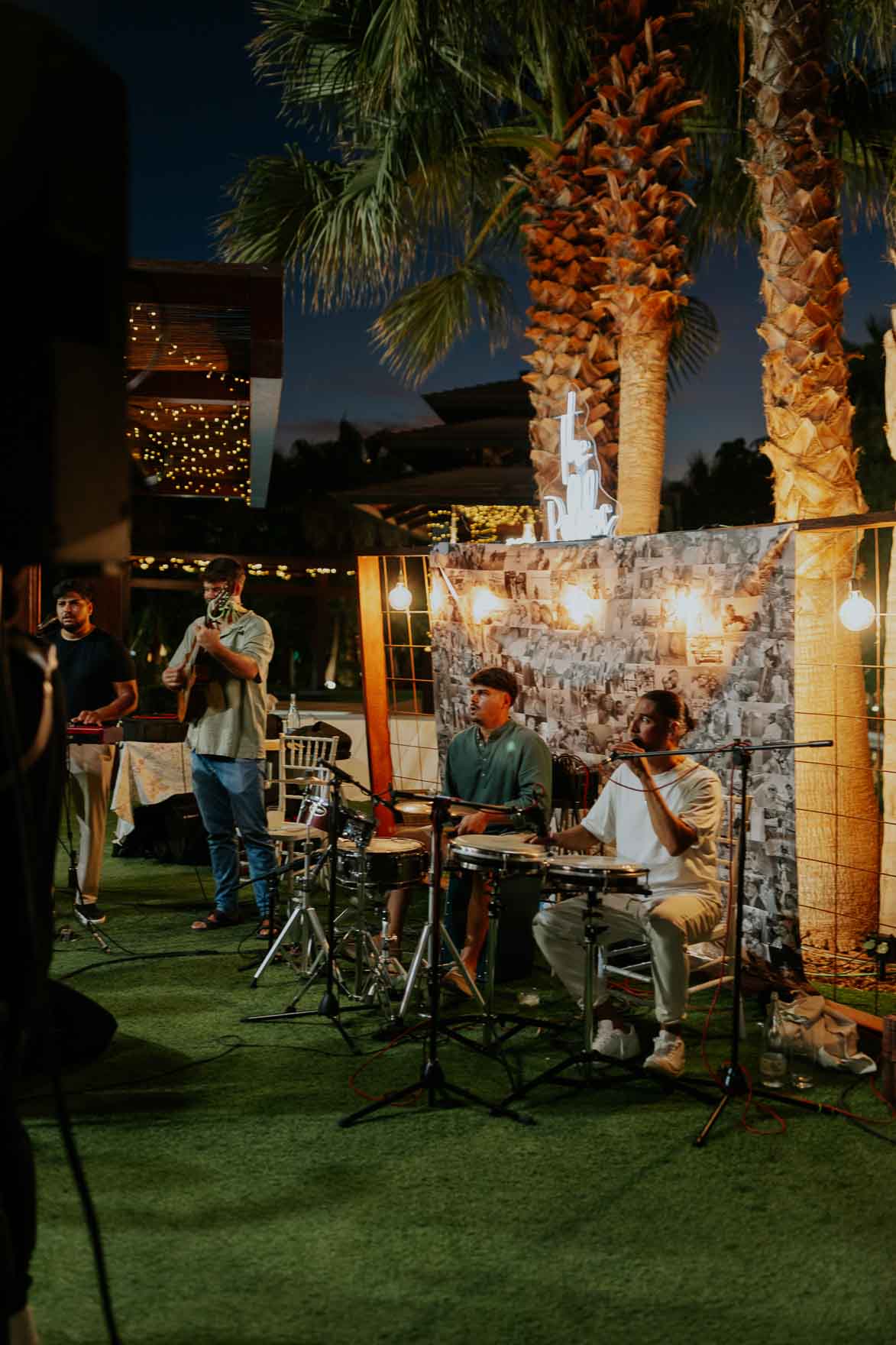 Después de la ceremonia, la boda continuó en el salon donde un grupo musical puso el ambiente durante la comida, y posteriormente la fiesta continuó con Carlos, DJ de Valencia, y EventsMS al frente del disco móvil.