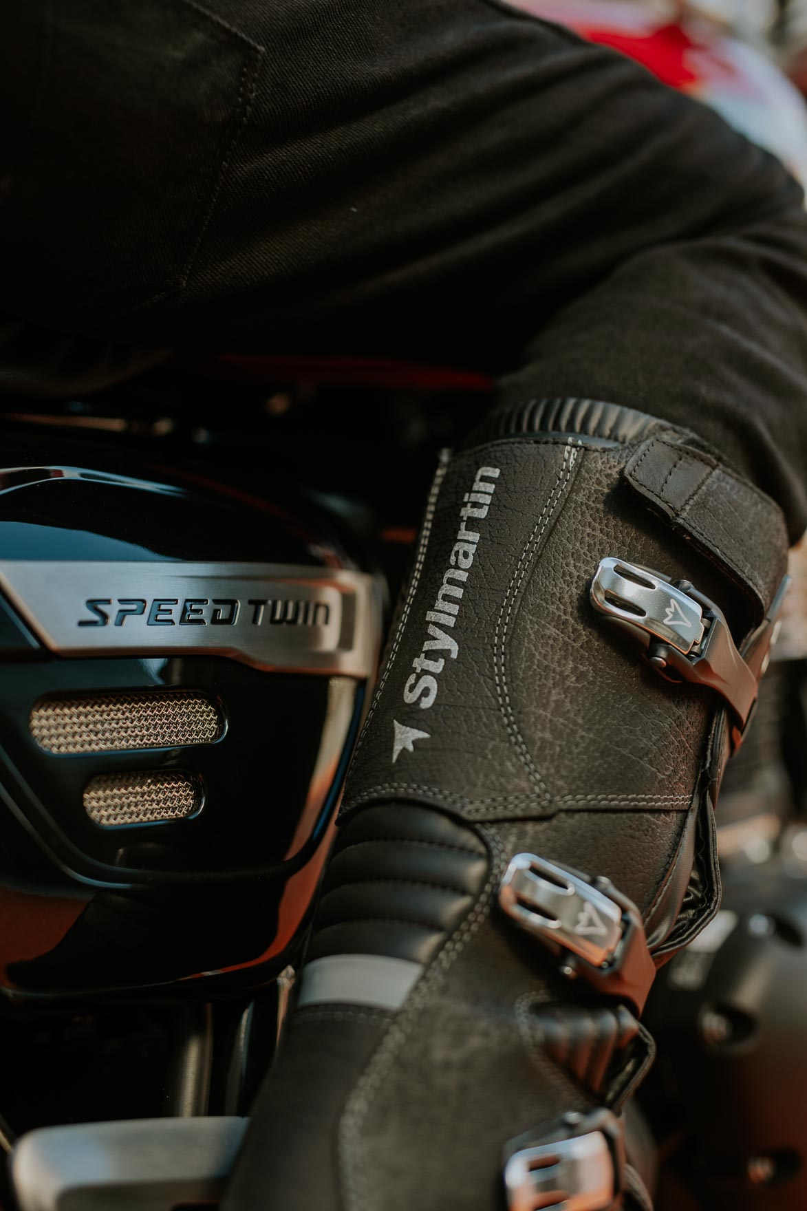 La seguridad, certificada por la norma EN 13634:2017 y garantizada por Stylmartin, también está asegurada por la especial suela en goma 100%, específicamente diseñada con un patrón personalizado.